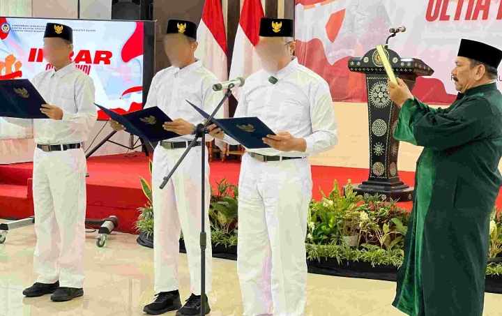 Tiga narapidana terorisme dengan lantang membacakan ikrar dan janji setia kepada NKRI, menyatakan kesediaan mereka untuk berlepas diri dari segala organisasi yang bertentangan dengan ideologi Pancasila.