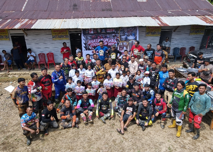 Satgas Madago Raya bersama komunitas offroad menembus medan ekstrem menuju sekolah terpencil di Parigi Moutong, membawa bantuan sosial dan makanan bergizi dalam rangka Hari Bhayangkara ke-79.