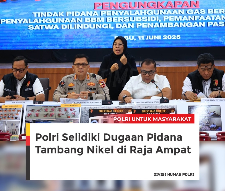 Brigjen Pol. Nunung Syaifuddin, S.I.K., M.M., selaku Dirtipidter Bareskrim Polri, menegaskan bahwa proses penyelidikan dilakukan sesuai dengan ketentuan hukum yang berlaku, termasuk aspek dugaan kerusakan lingkungan akibat aktivitas pertambangan yang dilakukan perusahaan-perusahaan tersebut.