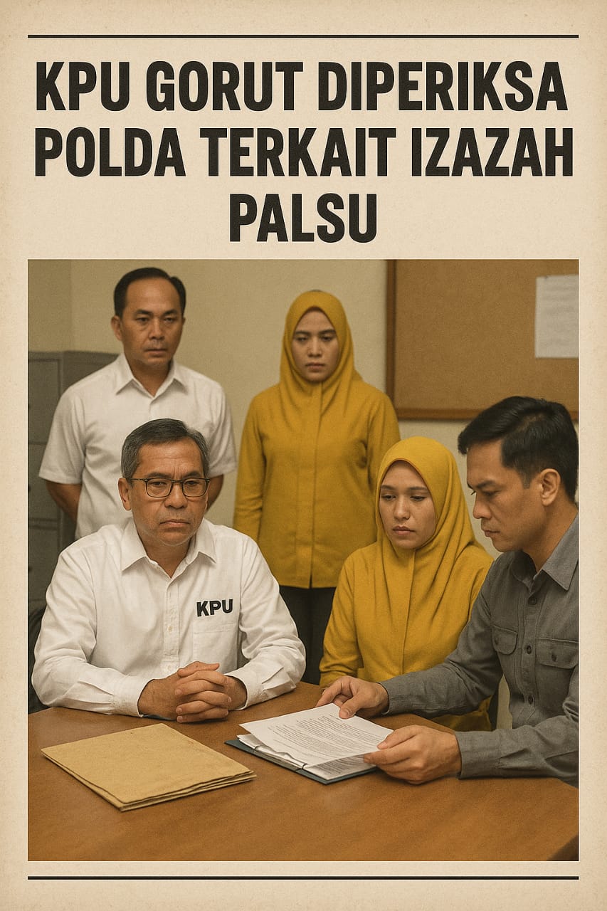MNRTV NEWS, Gorontalo – Skandal dugaan pemalsuan dokumen ijazah oleh Calon Wakil Bupati Gorontalo Utara, Nurjanah Yusuf, memasuki babak baru. Hari ini, Selasa (10/6/2025), penyidik Direktorat Reserse Kriminal Umum (Reskrimum) Polda Gorontalo resmi memanggil dan memeriksa Komisi Pemilihan Umum (KPU) Kabupaten Gorontalo Utara.