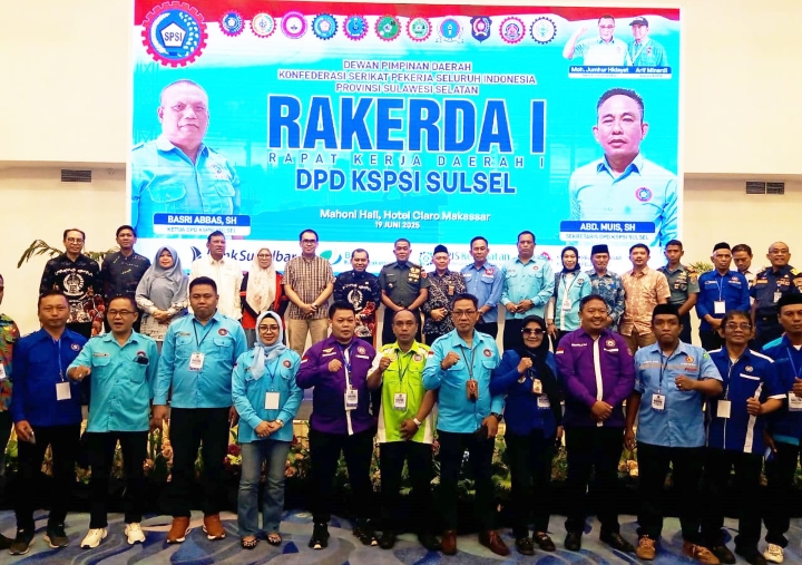 MNRTV NEWS, Makassar – Dewan Pimpinan Daerah Konfederasi Serikat Pekerja Seluruh Indonesia (DPD KSPSI) Provinsi Sulawesi Selatan menggelar Rapat Kerja Daerah (Rakerda) ke-I tahun 2025, yang berlangsung pada Kamis (19/06/2025) di Hotel Claro, Jl. A.P. Pettarani, Makassar.