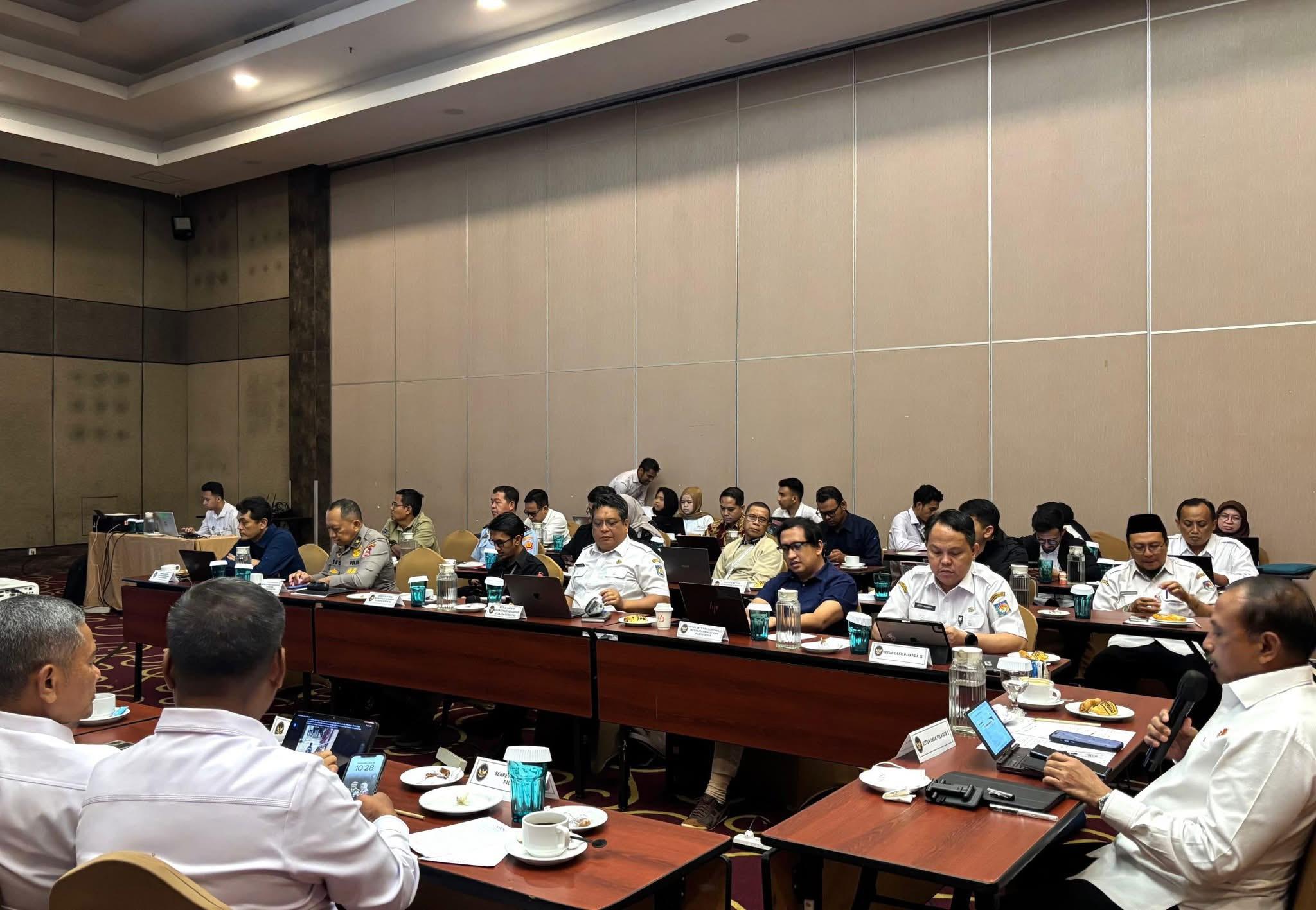 Desk Koordinasi Pilkada menggelar rapat koordinasi guna membahas situasi terkini serta hasil pemantauan dari para ketua satuan tugas (satgas) lintas instansi.