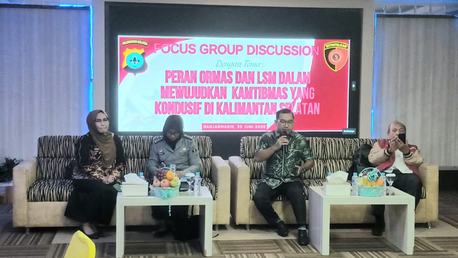 MNRTV NEWS, Banjarmasin – Dalam upaya memperkuat sinergi antara kepolisian dan elemen masyarakat sipil, Direktorat Intelijen Keamanan (Intelkam) Polda Kalimantan Selatan menggelar kegiatan Focus Group Discussion (FGD) bertema “Peran Ormas dan LSM dalam Mewujudkan Kamtibmas yang Kondusif di Kalimantan Selatan”, Senin (30/6/2025), di Ballroom Hotel Victoria, Banjarmasin.