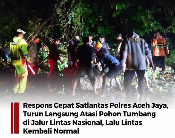 MNRTV NEWS, Calang – Kepedulian dan kesigapan ditunjukkan oleh Satuan Lalu Lintas (Satlantas) Polres Aceh Jaya dalam merespons peristiwa pohon tumbang yang menutup badan jalan di Jalur Nasional Banda Aceh–Meulaboh.