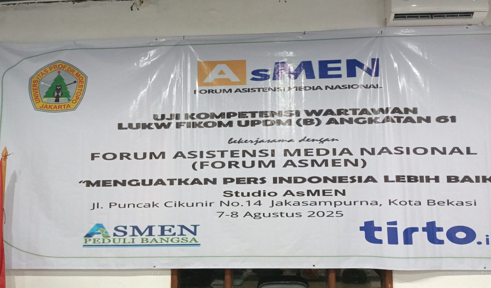 MNRTV NEWS, Bekasi – Forum Asistensi Media Nasional (AsMEN) kembali menunjukkan komitmennya terhadap peningkatan kualitas jurnalisme di Indonesia. Bekerja sama dengan Universitas Prof. Dr. Moestopo (Beragama) melalui Lembaga Uji Kompetensi Wartawan (LUKW) FIKOM UPDM (B), AsMEN menggelar Uji Kompetensi Wartawan (UKW) Angkatan 61 pada 7–8 Agustus 2025.