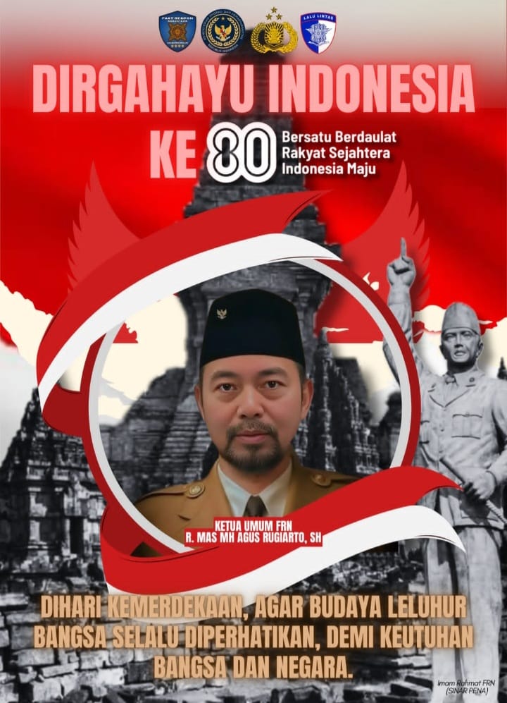 MNRTV NEWS, Jakarta – Ketua Umum Dewan Pimpinan Pusat (DPP) Fast Respon Nusantara (FRN) Counter Polri, R. Mas MH. Agus Rugiarto SH atau yang akrab disapa Agus Flores, menyampaikan ucapan selamat memperingati Hari Ulang Tahun (HUT) ke-80 Kemerdekaan Republik Indonesia.