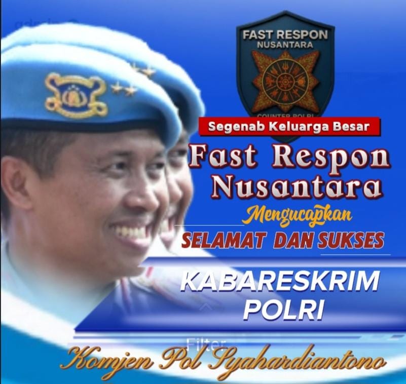 “Atas nama keluarga besar Fast Respon Nusantara (FRN) Counter Polri, kami mengucapkan selamat dan sukses kepada Bapak Komjen Pol Syahardiantono yang telah resmi dilantik sebagai Kabareskrim Polri. Semoga selalu amanah, profesional, dan membawa Polri semakin dipercaya masyarakat,” ujar Agus Flores, (19/8).