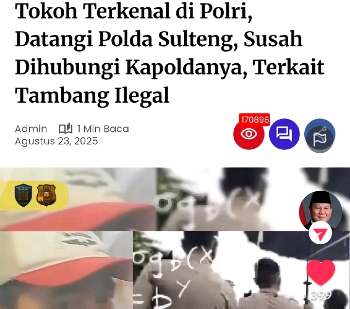 “Tokoh Terkenal di Polri, Datangi Polda Sulteng, Susah Dihubungi Kapoldanya, Terkait Tambang Ilegal”.