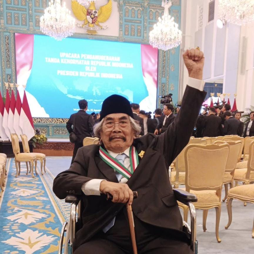 Taufiq Ismail – Bintang Mahaputra Nararya, sastrawan besar yang berkontribusi dalam penciptaan dan penyebaran sastra Indonesia.
