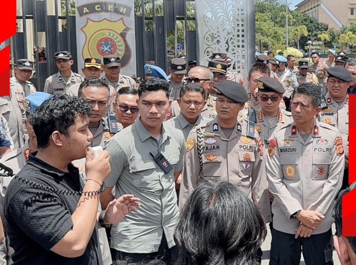 Dalam aksi tersebut, Kapolda Aceh hadir langsung menemui mahasiswa. Dengan penuh kehangatan, ia mengawali pertemuan dengan ucapan salam dan rasa syukur atas kepedulian generasi muda terhadap isu-isu kebangsaan.