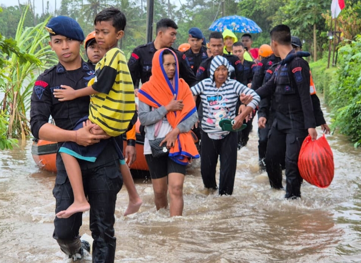Sejumlah personel Brimob Polda Bali dikerahkan untuk mengevakuasi warga yang terjebak banjir, termasuk anak-anak dan lansia. Proses evakuasi dilakukan menggunakan perahu karet dan dengan pengawalan langsung dari petugas di lapangan.