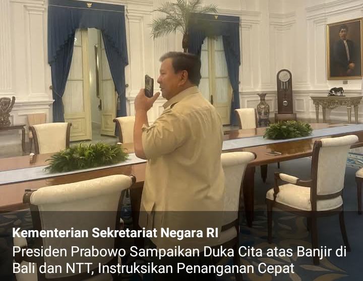 MNRTV NEWS, Jakarta – Presiden Republik Indonesia, Prabowo Subianto, menyampaikan duka cita mendalam atas bencana banjir yang melanda sejumlah wilayah di Provinsi Bali dan Nusa Tenggara Timur (NTT).