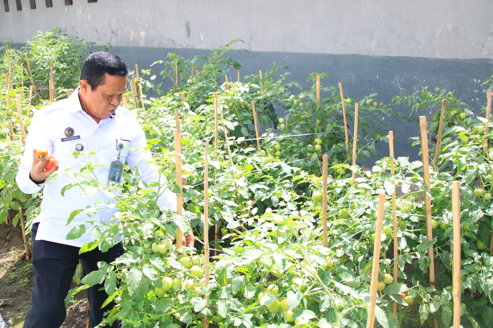 Dua komoditas yang dibudidayakan, yakni kacang panjang dan tomat, berhasil dipanen perdana sebanyak masing-masing 5 kilogram, Senin (22/9).