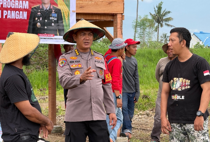 Kapolda Sulteng Irjen Pol Dr. Agus Nugroho melalui Kaops Madago Raya Kombes Pol Heni Agus Sunandar menyerahkan bantuan sosial berupa alat pertanian dan benih bibit jagung kepada eks simpatisan kelompok radikalisme di Desa Pombewe, Kecamatan Biromaru, Kabupaten Sigi, pada Sabtu (27/9/2025).