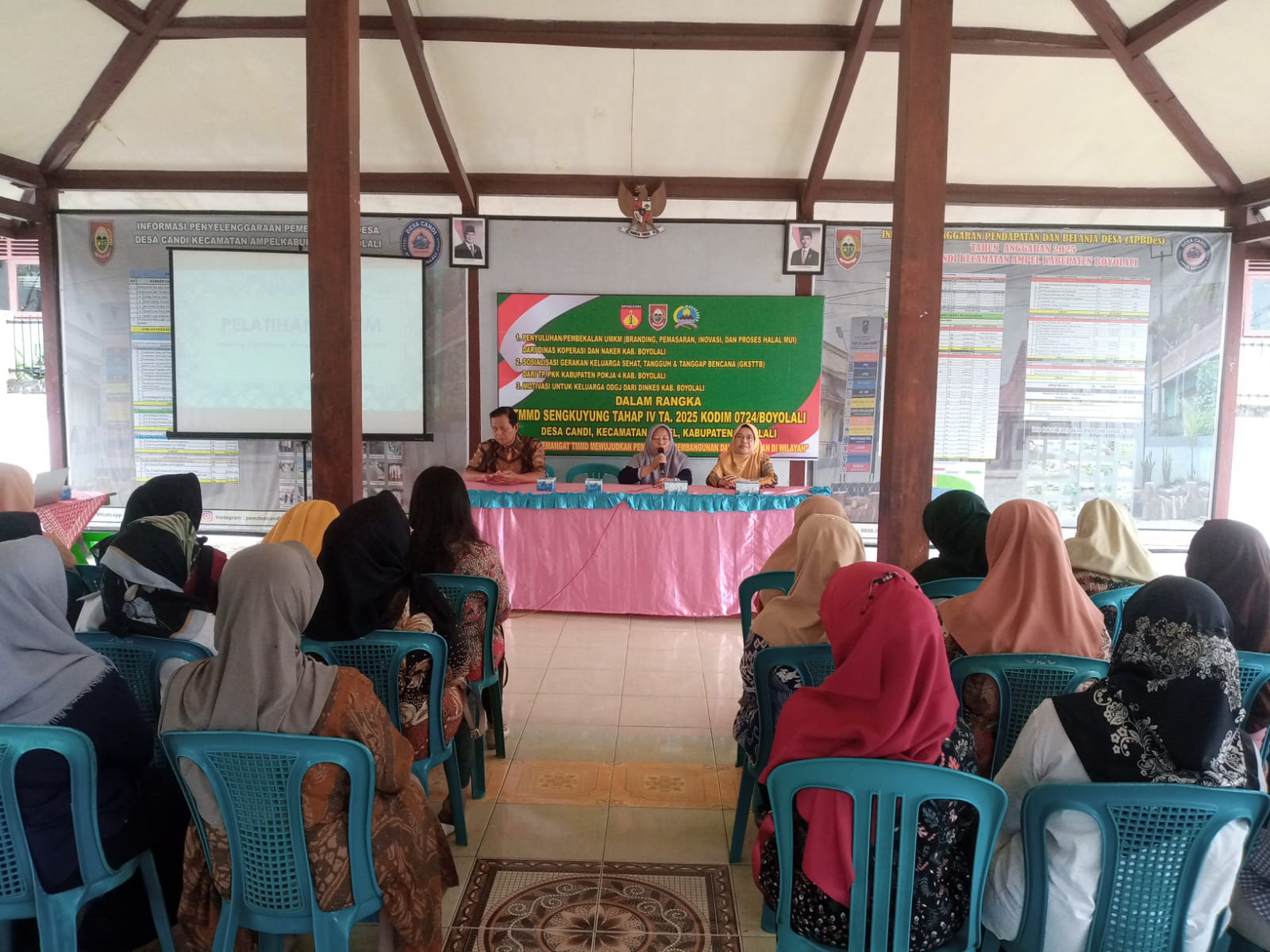 Bersinergi dengan Dinas Koperasi dan UKM Kabupaten Boyolali, Satgas TMMD menggelar penyuluhan pengembangan Usaha Mikro Kecil dan Menengah (UMKM) di Aula Balai Desa Candi, Kecamatan Ampel, (25/10/25).