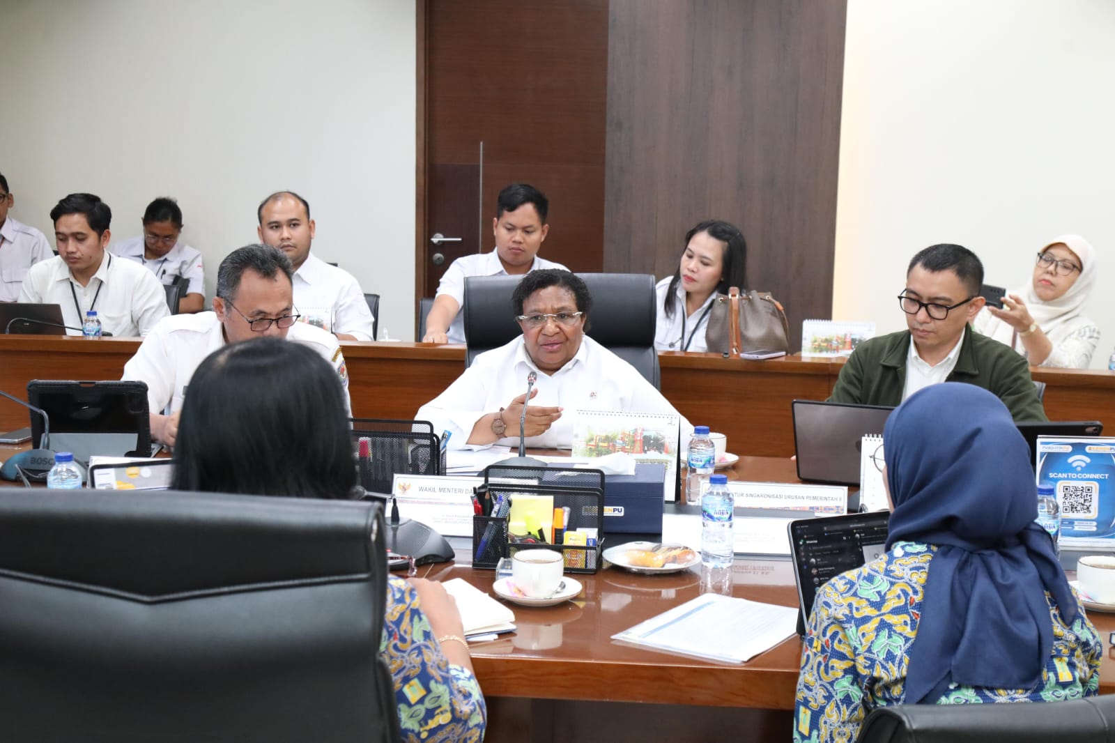 Turut hadir pada rapat tersebut Direktur Sinkronisasi Urusan Pemerintahan Daerah II Direktorat Jenderal (Ditjen) Bina Pembangunan Daerah (Bangda) Kemendagri Suprayitno, Direktur Jenderal (Dirjen) Cipta Karya Dewi Chomistriana, Direktur Bina Penataan Bangunan Johannes Wahju Kusumosusanto, serta para pejabat lainnya di lingkungan Kemendagri dan Kementerian PU.