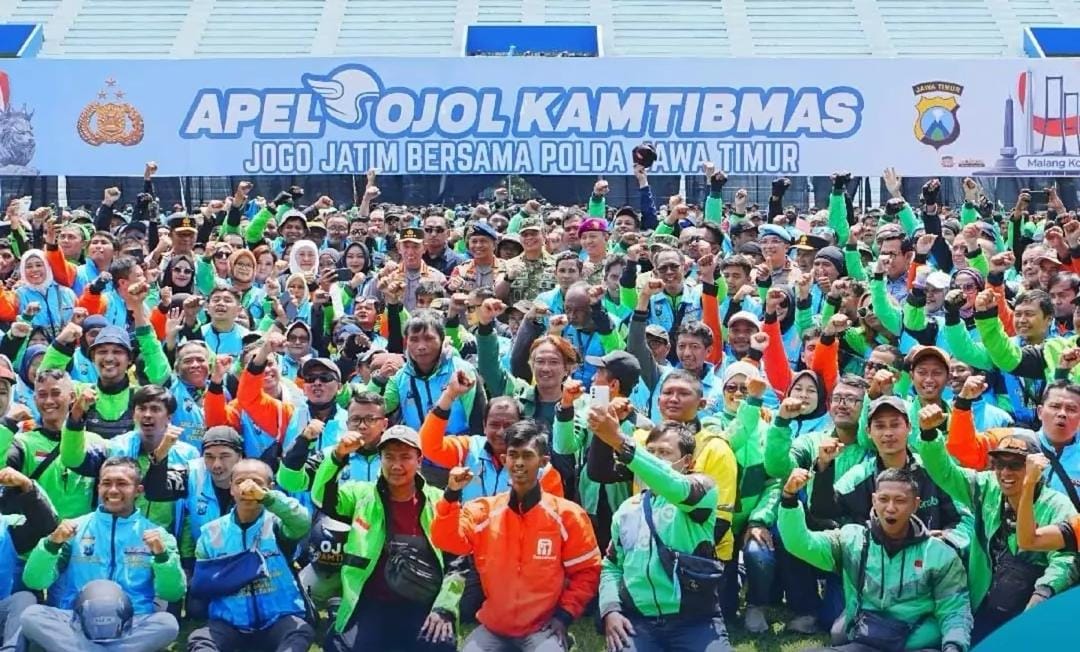 Adapun peserta apel terdiri dari 180 personel Bhabinkamtibmas, 150 anggota Satsamapta, serta 4.425 driver ojol dari berbagai wilayah di Jawa Timur.