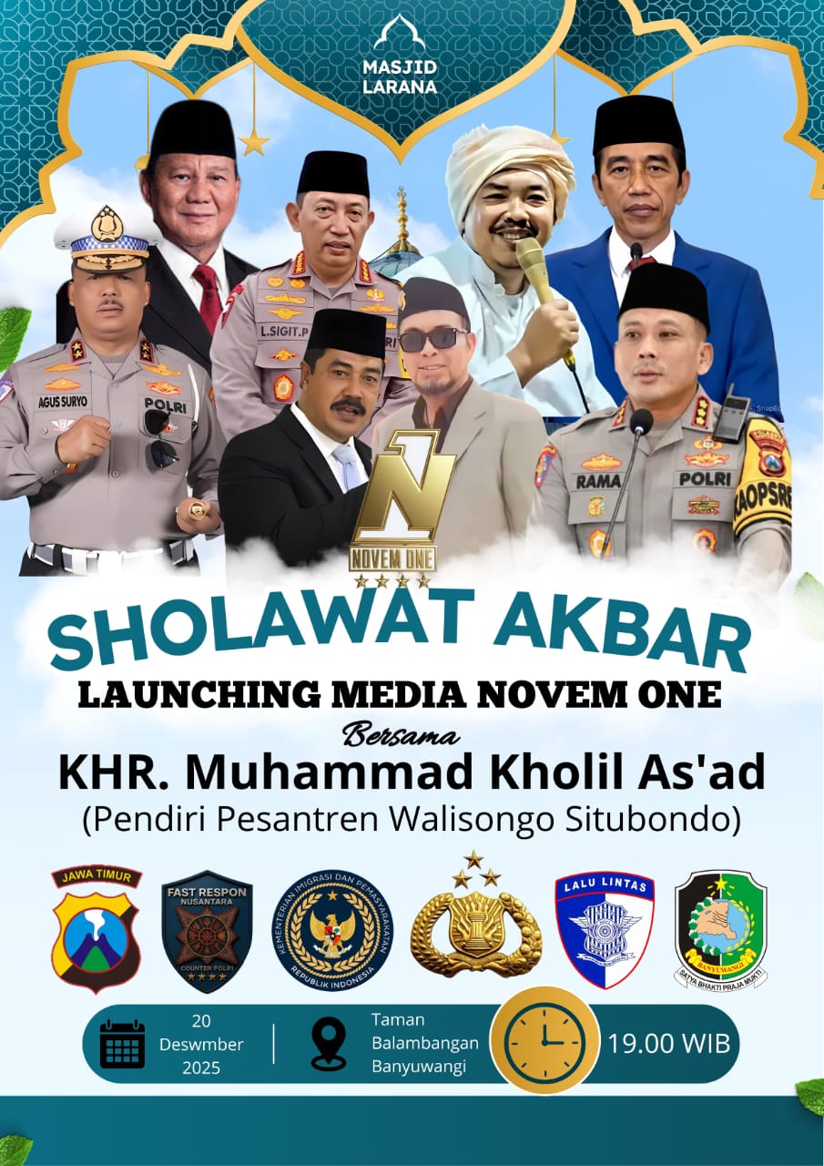 Sinergi Ulama, Aparat, dan Wartawan: Sholawat Akbar Sekaligus Launching Novem One di Banyuwangi