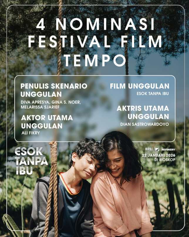 MNRTV News, Jakarta — Film Esok Tanpa Ibu (Mothernet) produksi BASE Entertainment, Beacon Film, Refinery Media, dan didukung oleh Singapore Film Commission (SFC) dan Infocomm Media Development Authority (IMDA) secara resmi terpilih masuk dalam nominasi Festival Film Tempo 2025. Sebuah festival film tahunan yang menilai film-film Indonesia berkualitas.